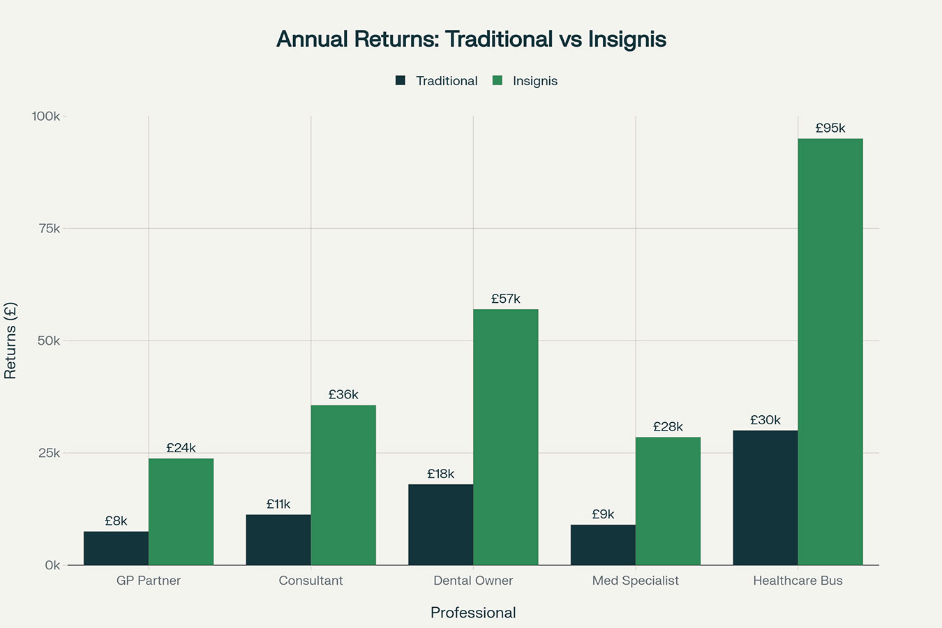 A client holds £750,000 in a high street bank account earning 1.15% interest. Their projected annual return would be just £8,625. By using the lnsignis platform, they could increase their projected annual interest to £32,850 by accessing a wider range of competitive rates. At the same time, they could achieve full FSCS coverage by spreading deposits across multiple deposit-takers, with up to £85,000 of protection available per eligible person per authorised institution.